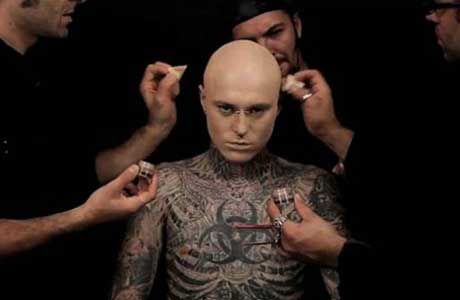 Dermablend – is a highly corrective efficacy make-up which can camouflage anything. To prove the power of the product, “tattoo man,” Rick Genest is turned into a blank canvas. The campaign slogan “go beyond the cover” questions if we judge a book by its cover.They make his skin “socially acceptable” but his true layer is not destroyed underneath.