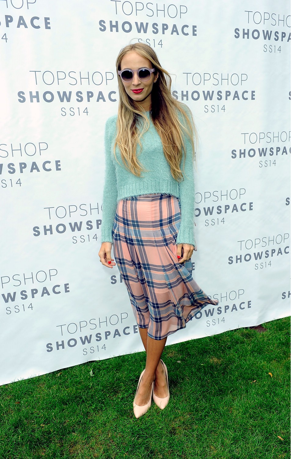 LISA MOORISH WEARS TOPSHOP UNIQUE SKIRT £150, TOPSHOP UNIQUE JUMPER £75 AND TOPSHOP SHOES, £88