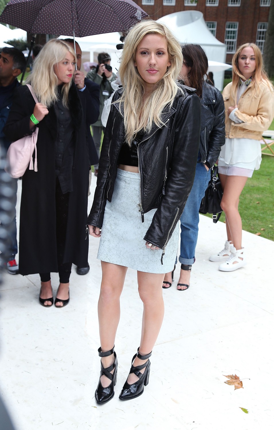 ELLIE GOULDING WEARS TOPSHOP BOUTIQUE SKIRT £120, TOPSHOP CROPPED TOP, £32 AND TOPSHOP UNIQUE SHOES, £135