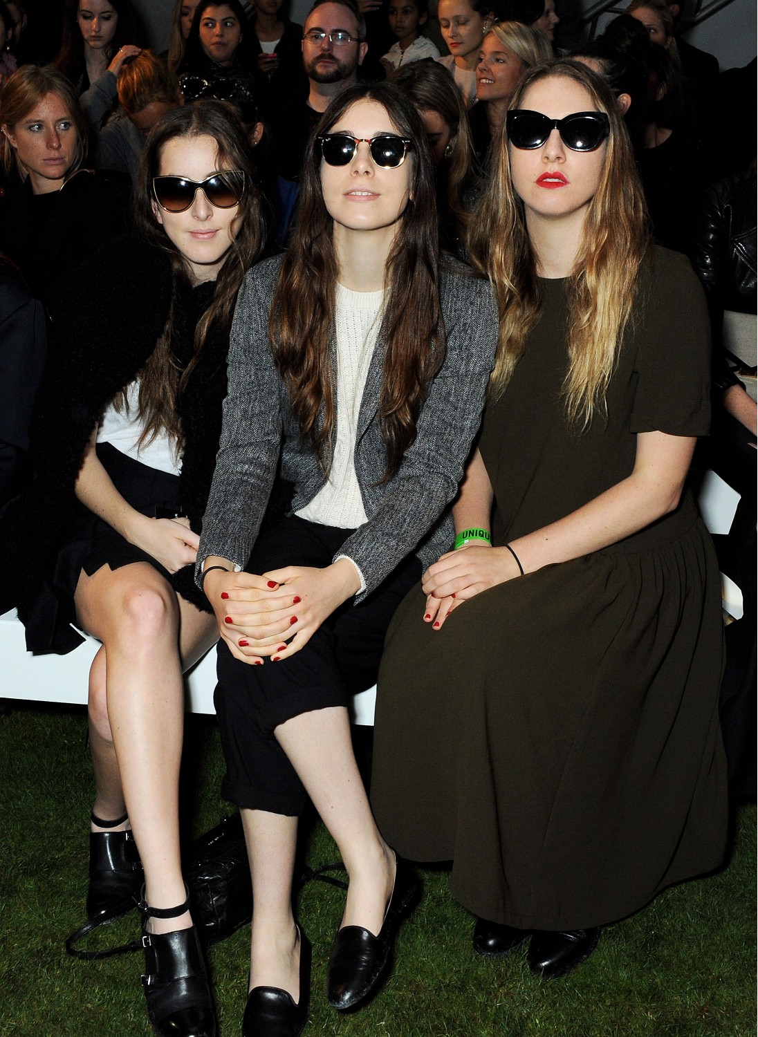 ESTE HAIM WEARS TOPSHOP BOUTIQUE DRESS £95 AND TOPSHOP BOOTS, £150
