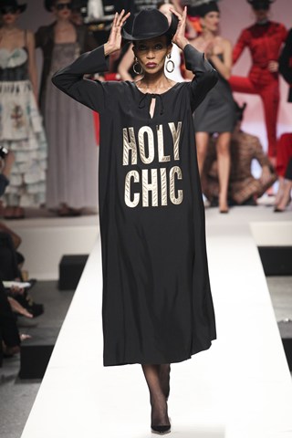 To celebrate 30 years of Moschino, Milan Fashion Week was treated to an 80’s performance from the talented Gloria Gaynor. The SS14 show was a tribute to the brand which kicked off with video footage of the late Franco Moschino. The collection came down in runway in two by two (models) hurrah hurrah. The mood was joyful, catwalk theatrical, most memorable outfits came from the bag dress, nun attire and newspaper suit. It was evident that Rossella Jardini had extracted inspiration from key Moschino pieces from the past 30 years. Gloria performed the uplifting ‘I am what I am.’