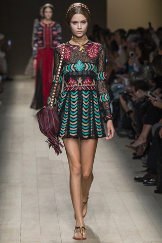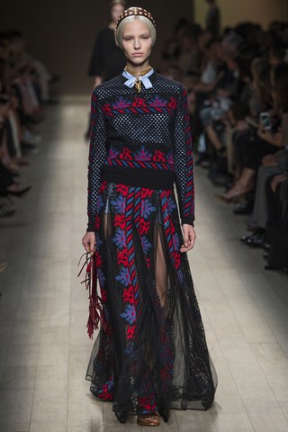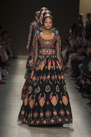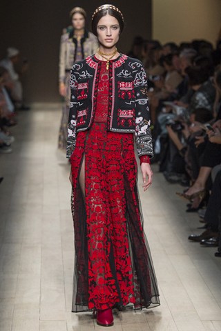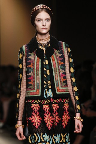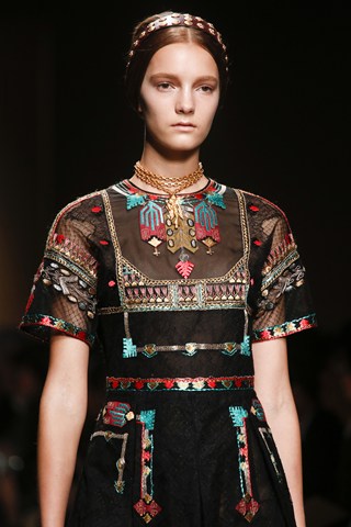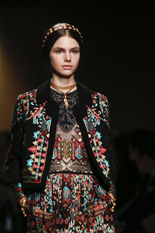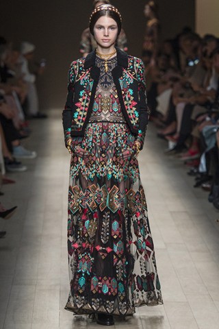 AHMAGADD Valentino, thank you for this majestic show! Pretty plaited models walked down the runway in Paris wearing a variety of Balkan-style ethnic patterns. This looked more like a couture collection, but more affordable and accessible!