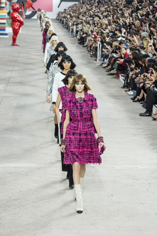 Karl Largerfeld never fails to make use of the huge space that fashion location, Grand Palais has to offer. This season saw the area transform into an art gallery setting. Art installations were also created by the brand, including a huge Chanel No5 robot. Artists that influenced the collection and Palais theme, were Kandinsky, Pollock, Oldenberg and Duchamp. It felt like Sunday at the Tate Modern!