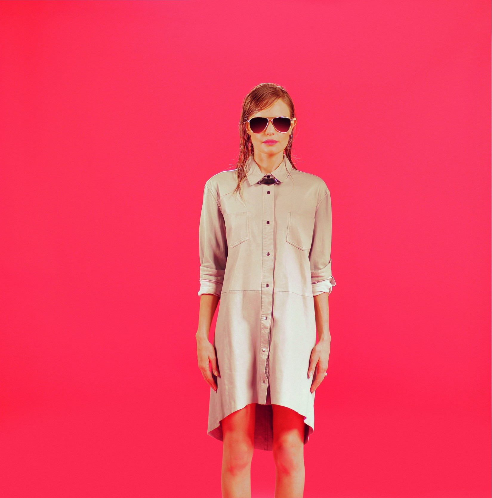Shoes are pointed and high, belts are wet-look in patent and mirrored oversize aviators finish off the chic and casual look.