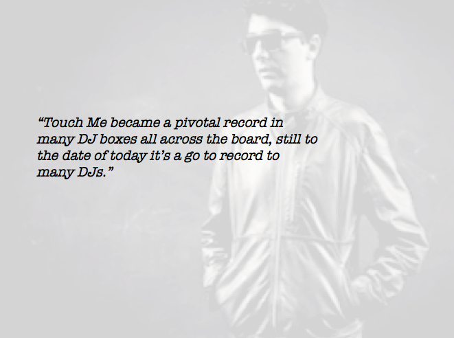 The success of Touch Me in 2001 started a new chapter in underground club records entering the mainstream charts. It also started a endless stream of similar releases straight after as many people tried to create a similar sound. Touch Me became a pivotal record in many DJ boxes all across the board, still to the date of today it’s a go to record to many DJs, just few weeks ago someone uploaded a video on Facebook where Carl Cox was playing the record at some daytime after party, everyone still loves this tune, there is something about the song that makes it very unique.