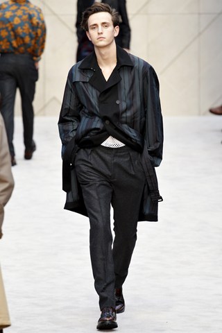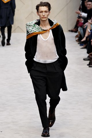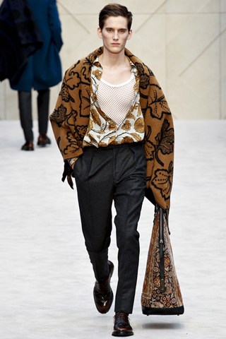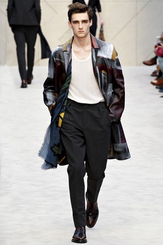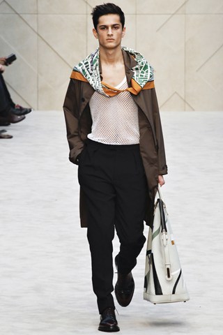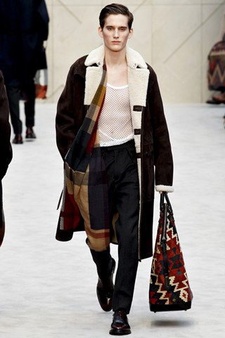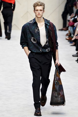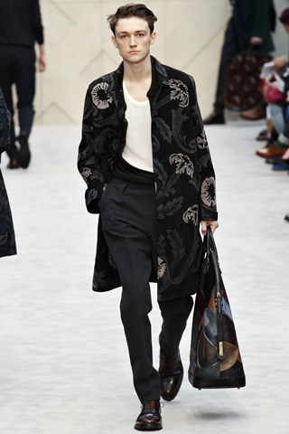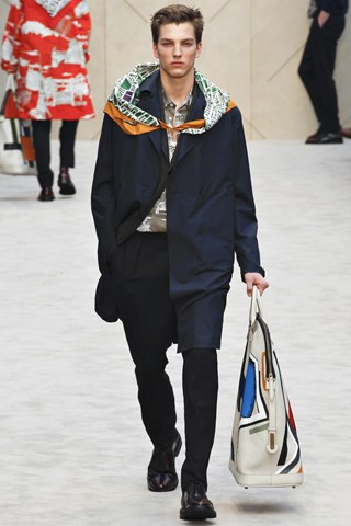 Christopher Bailey has an extremely chic AW14 collection for Men next winter. This season has seen a crossover between men and women’s fashion in terms of the trouser suit. The Burberry headquarters are clearly forecasting another unisex theme by giving men a silk scarf and huge man bag. Once again Bailey acts as the Jools Holland of the fashion industry through his fashion soundtrack choices.