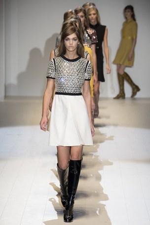 Milan Fashion Week kicked off yesterday. The GUCCI colour palette was a variation of pastel greens, blues and pinks. The collection was perhaps more easter than autumn. The clothing was extremely casual perfect for the working female. GUCCI injected a 60’s trend set to take over AW14/15 and we can’t wait for the highstreet to copy these designs…