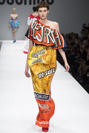 The Moschino AW14 ‘fast fashion’ catwalk collection, perhaps went a little too far. There was major irony in Rita Ora’s black dress which mentioned something along the lines of trademarks. Jeremy Scott will perhaps be biting his tongue once he receives legal threats from McDonalds (unless he proposes a new design for their uniforms). The collection was a mish mash of gimmicky unwearable branding, one might question if Scott was making a dig at the slogan trend currently dominating the highstreet stores. Either way Jeremy has released a capsule collection with Browns Fashion available today. We found the show entertaining but we’re not sure how welcoming we will feel next autumn, short lived but funny, thanks Scotty….