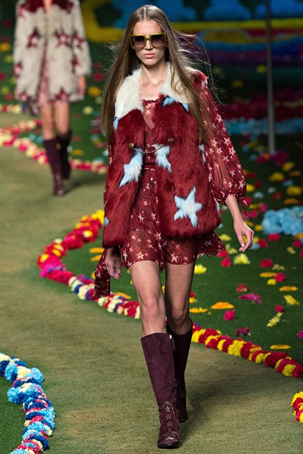 Marc Jacobs gave his audience a show to remember thanks to Beats by Dre instructing the viewers on the collection and music. Tommy Hilfiger was inspired the the Sergent Peppers album cover and decked out the runway with an array of flowers and hippie models. Festival fashion will be heaven on earth next year! Take a scroll through our top outfits and look out for embellished ensembles at Naeem Khan plus Elmer the Elephant inspired fur at Libertine……..