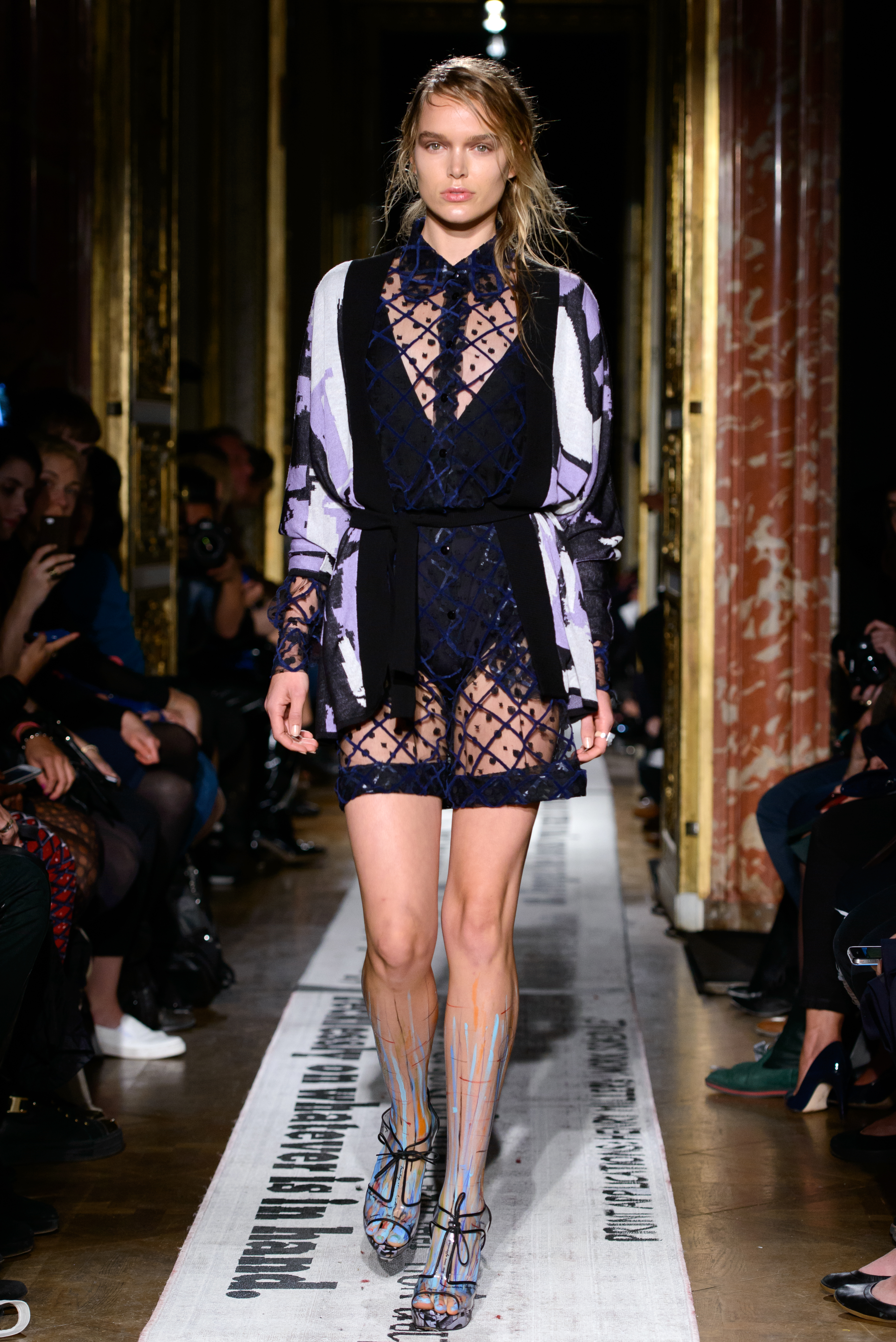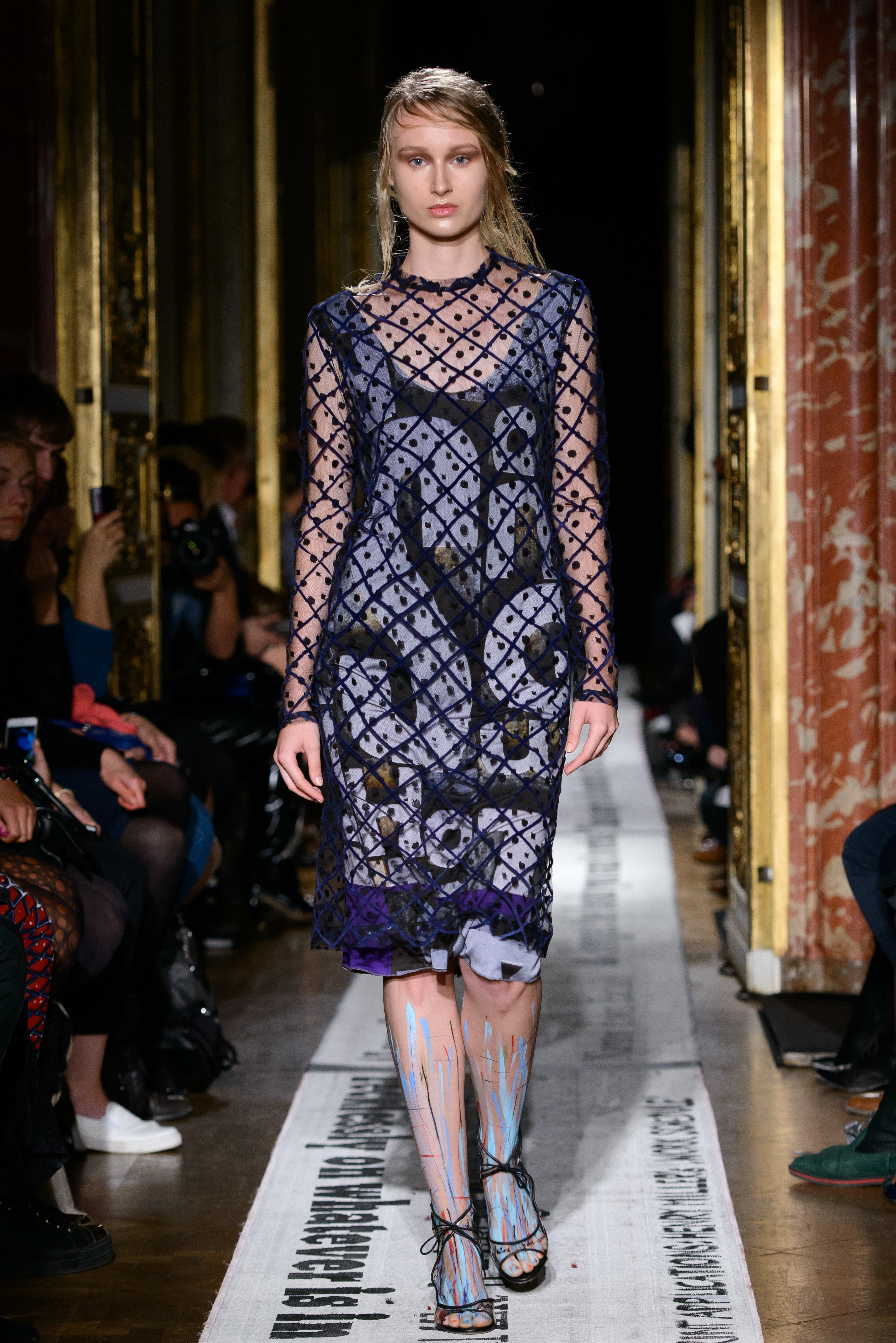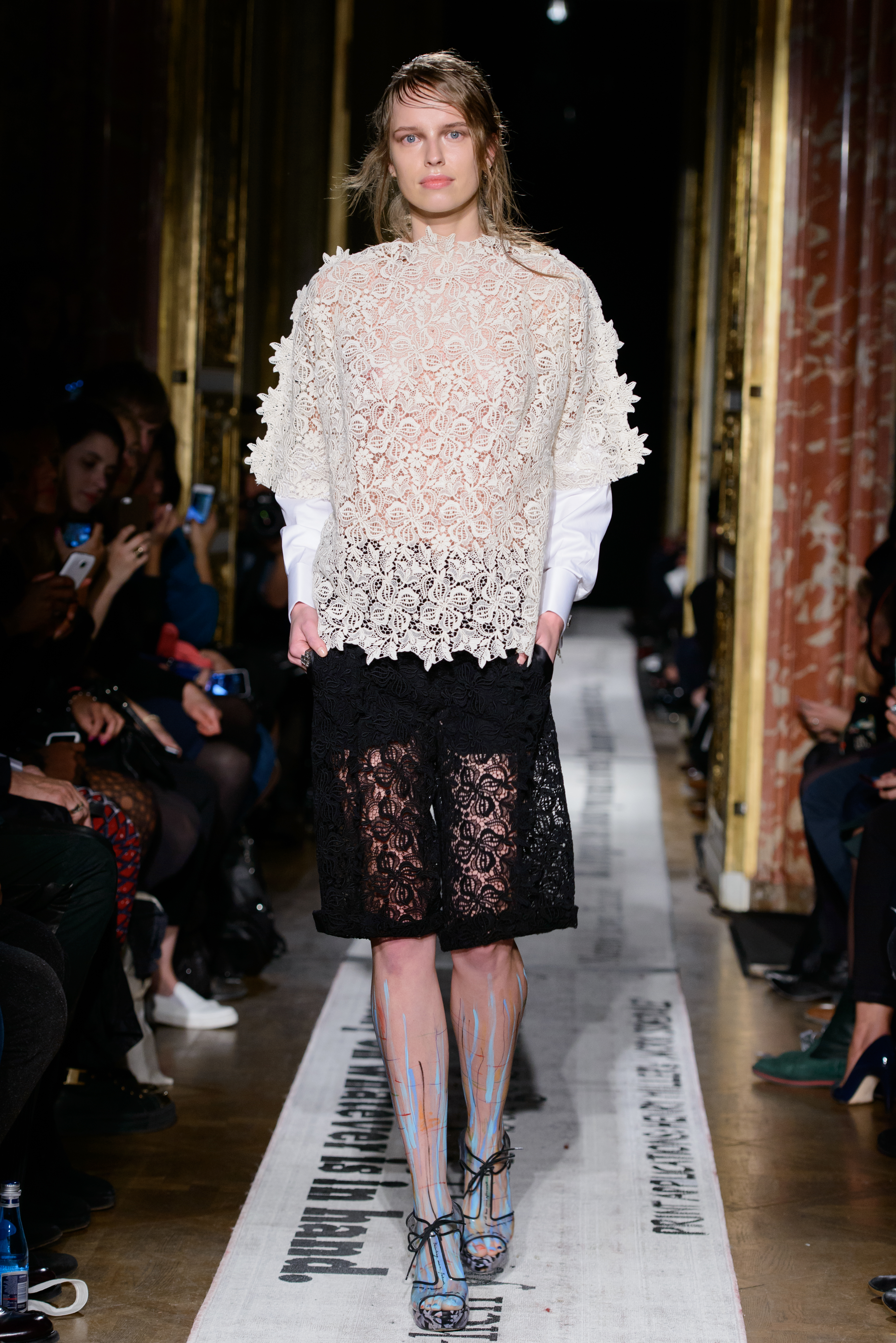 The ‘Commandments’ themselves featured heavily as they were printed on the runway, listed in full in the programme and handwritten on the models’ bodies by the designer herself.