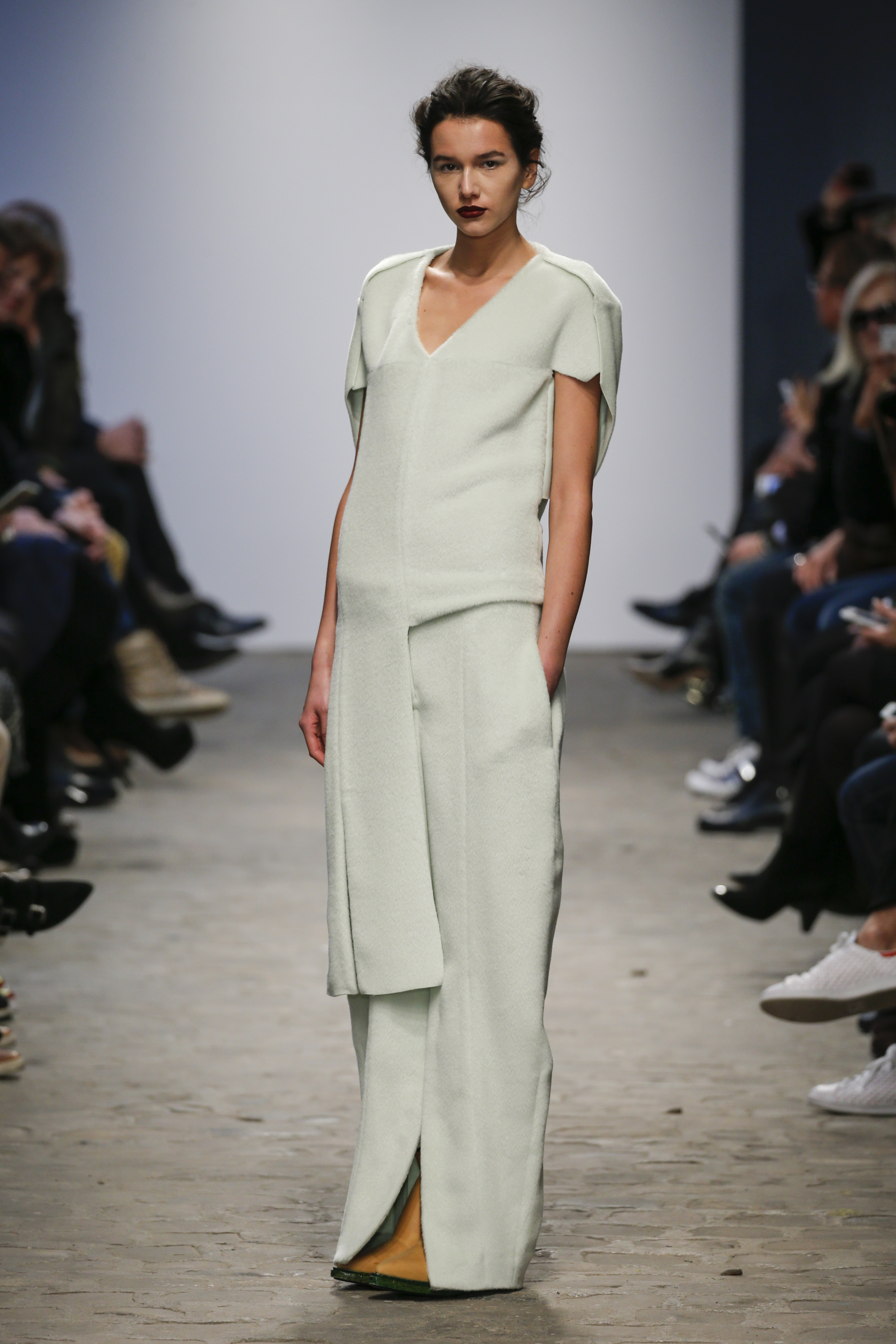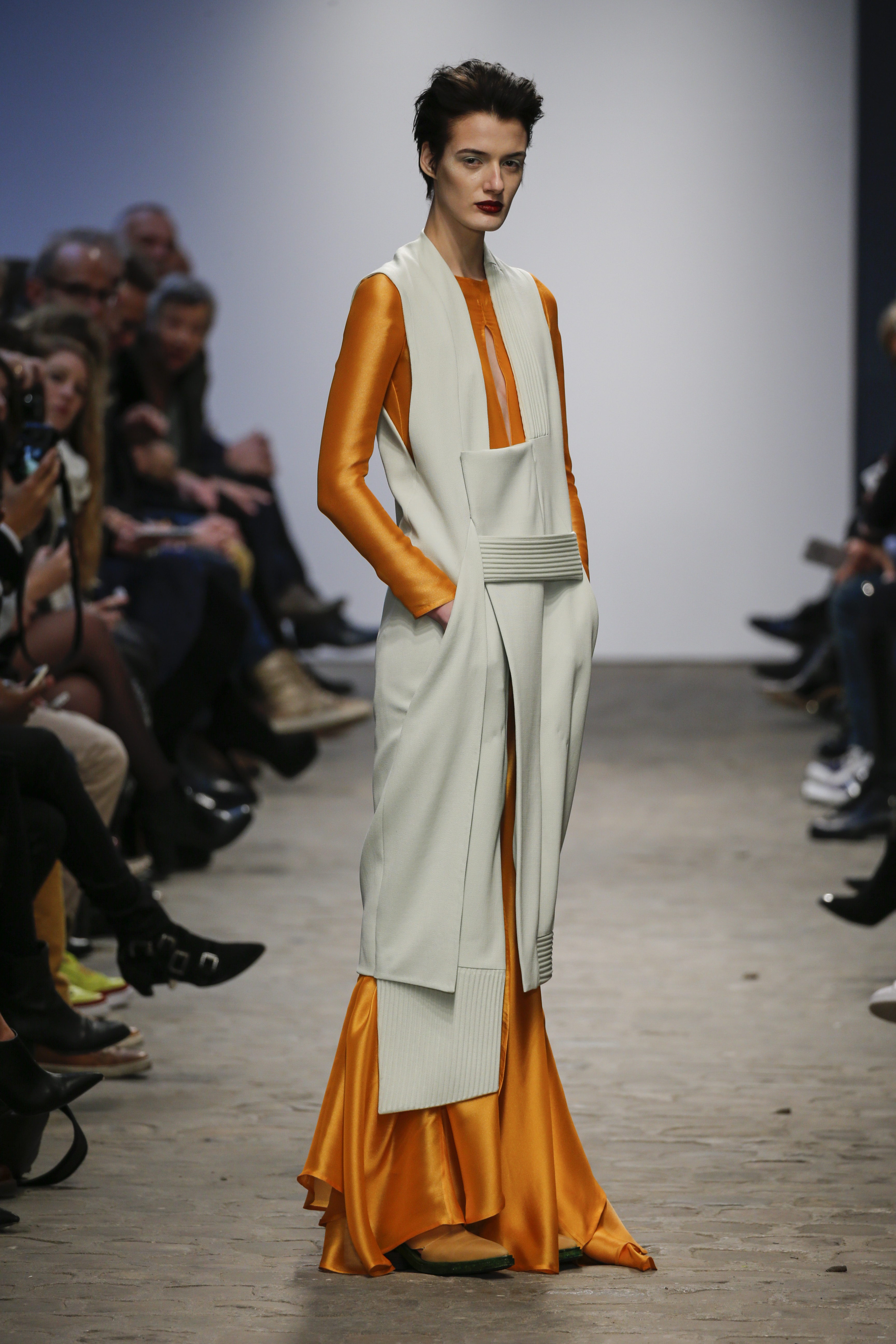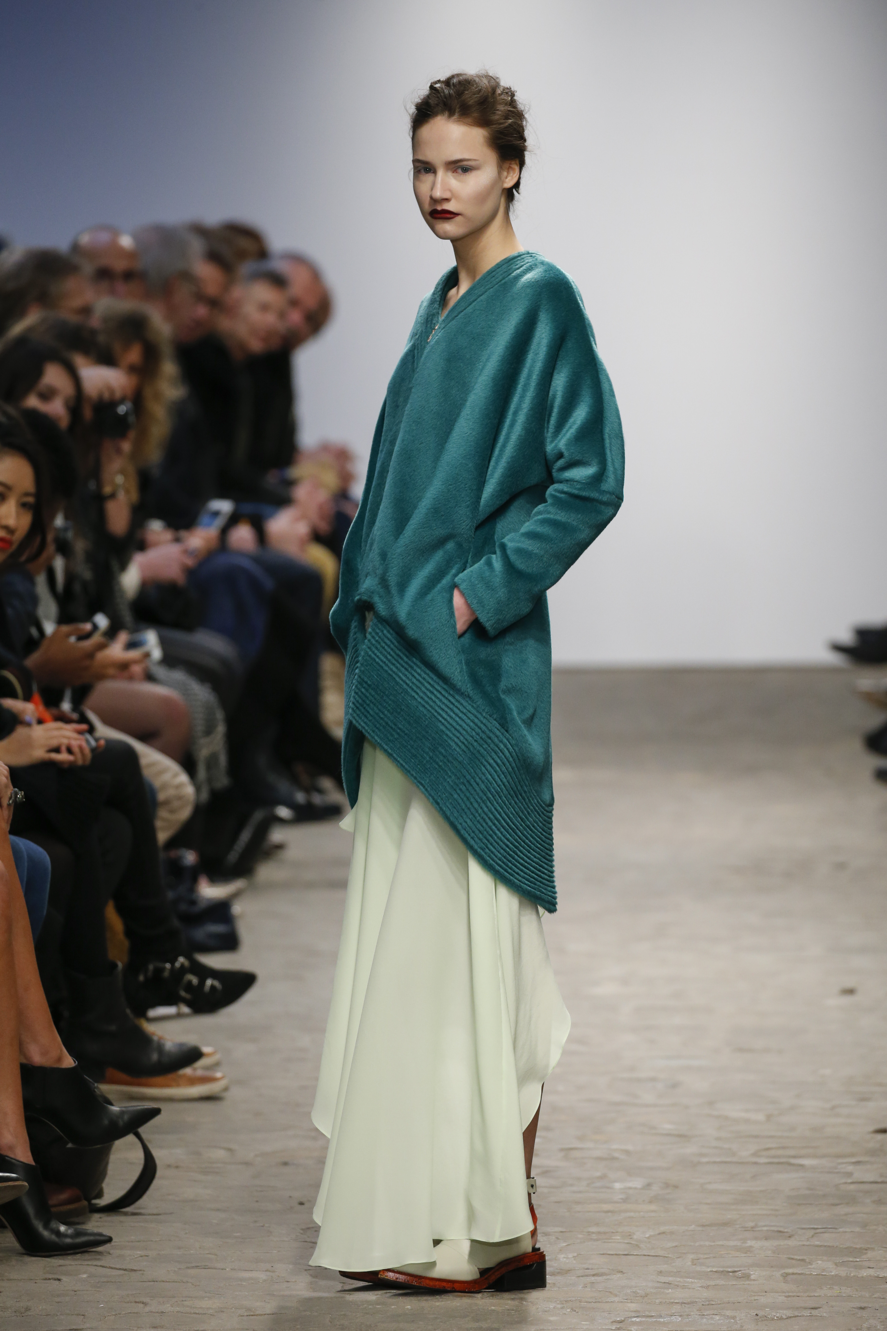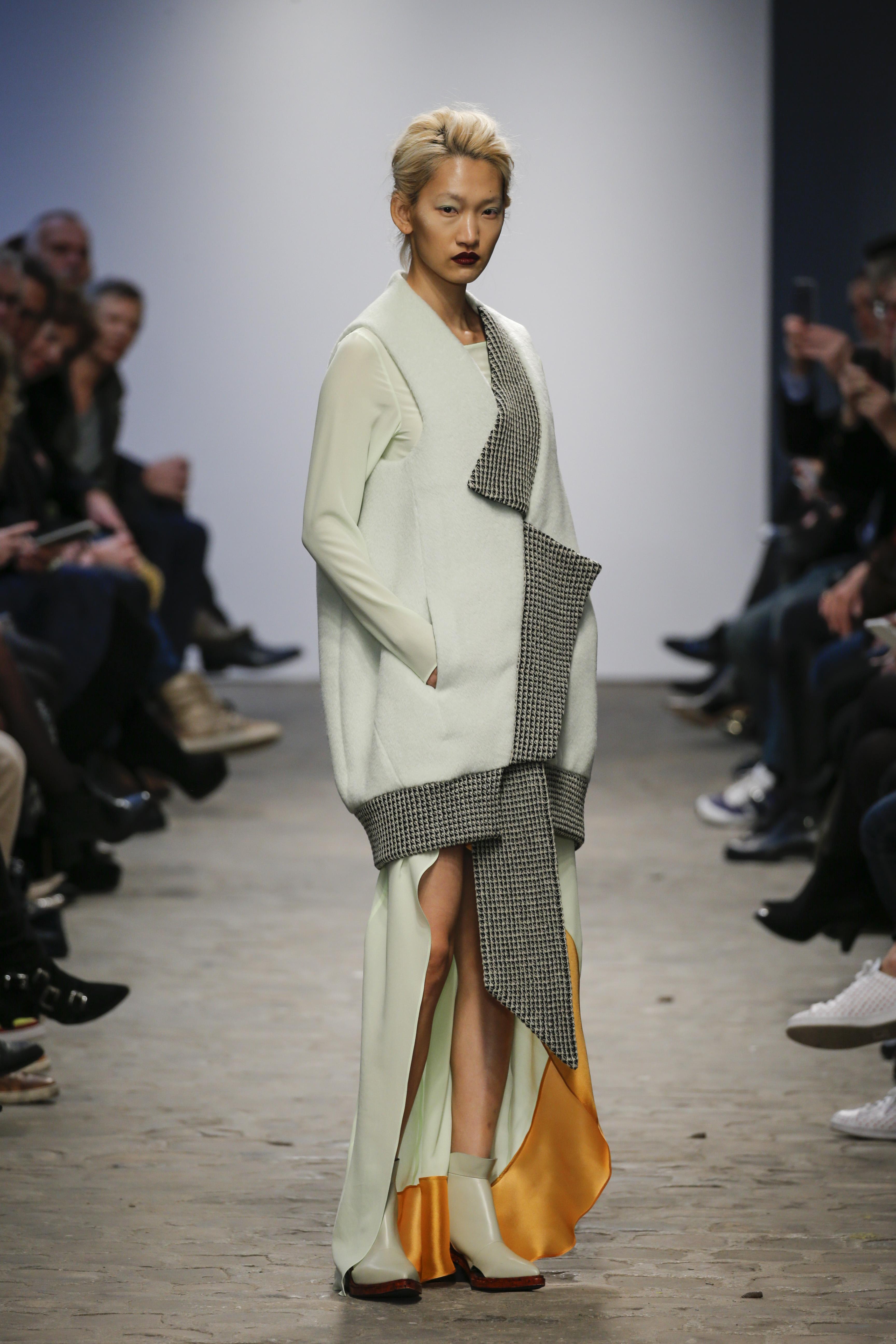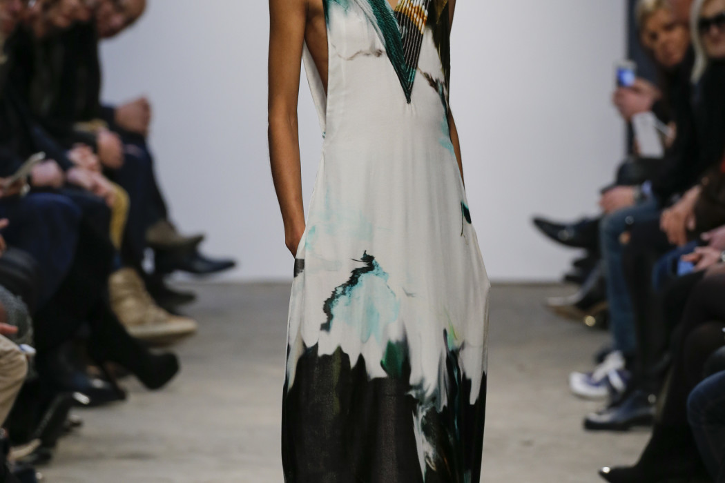 There was a mix of big volumes and fluid shear silks…….