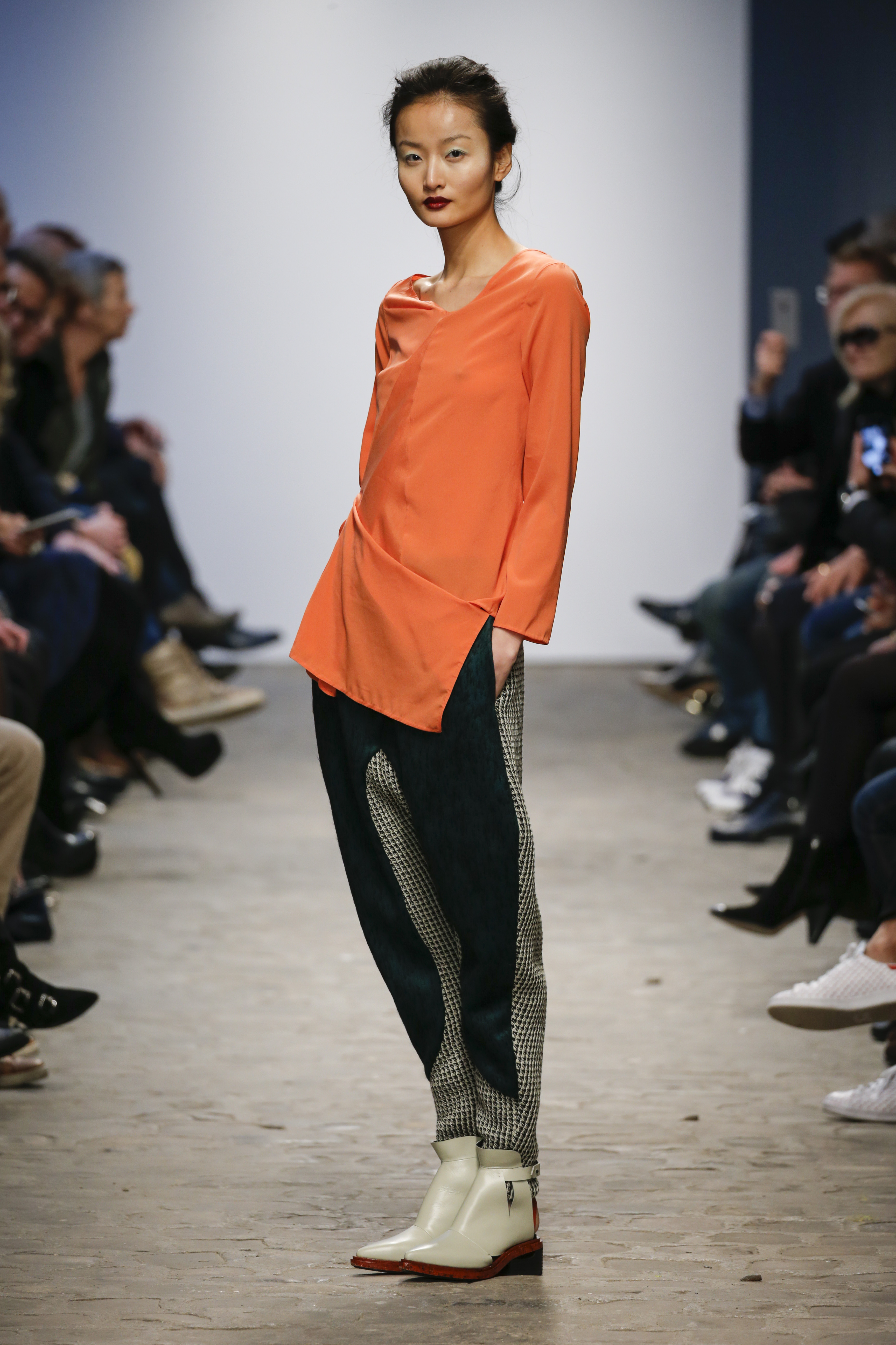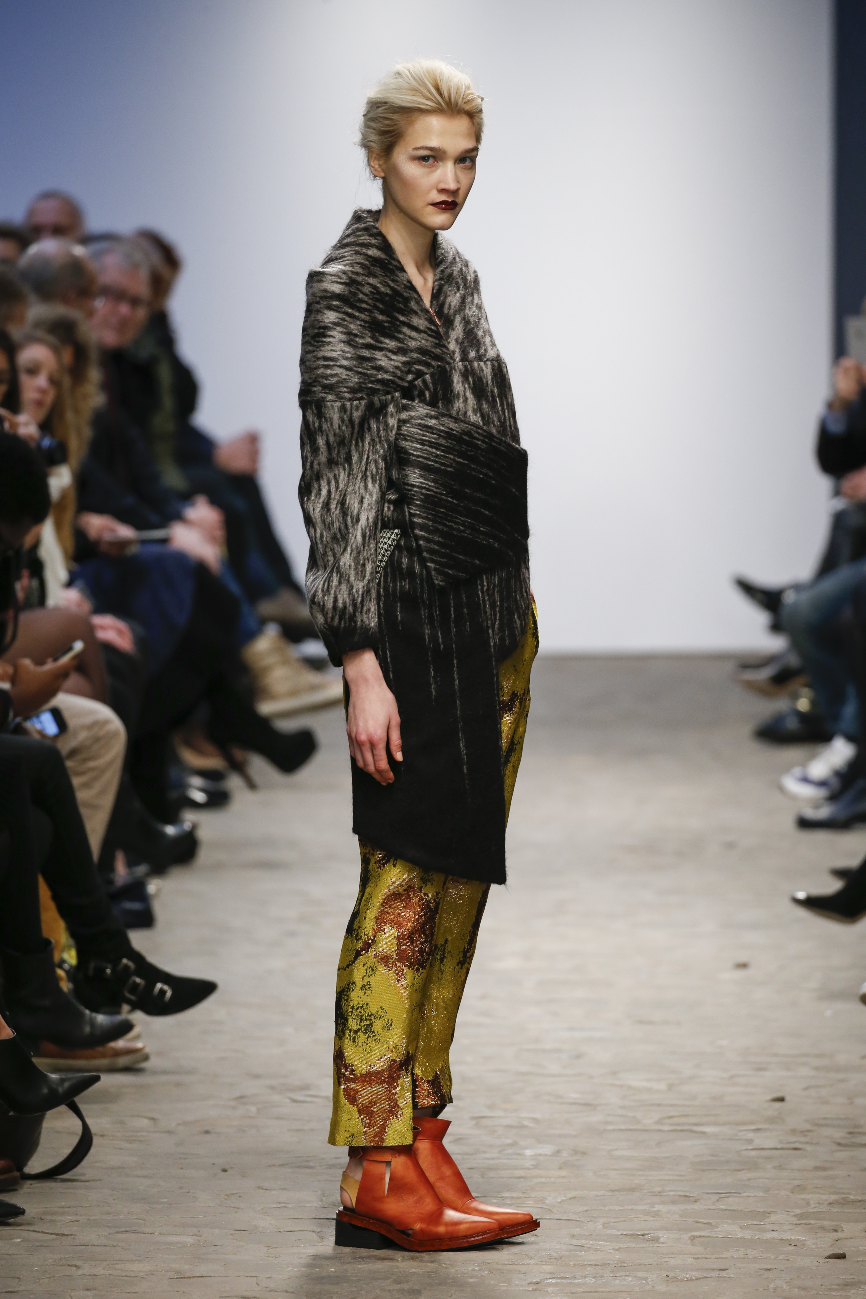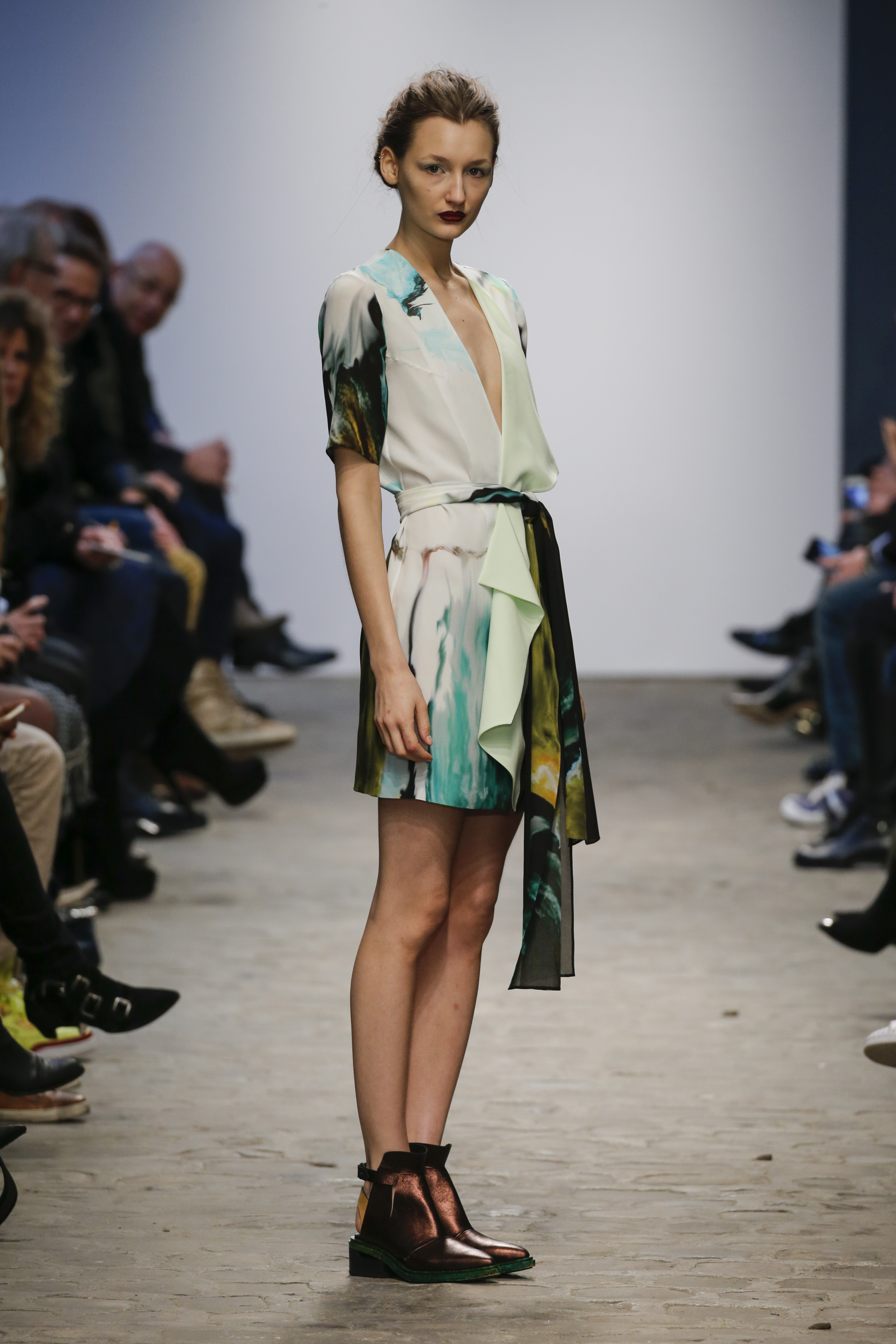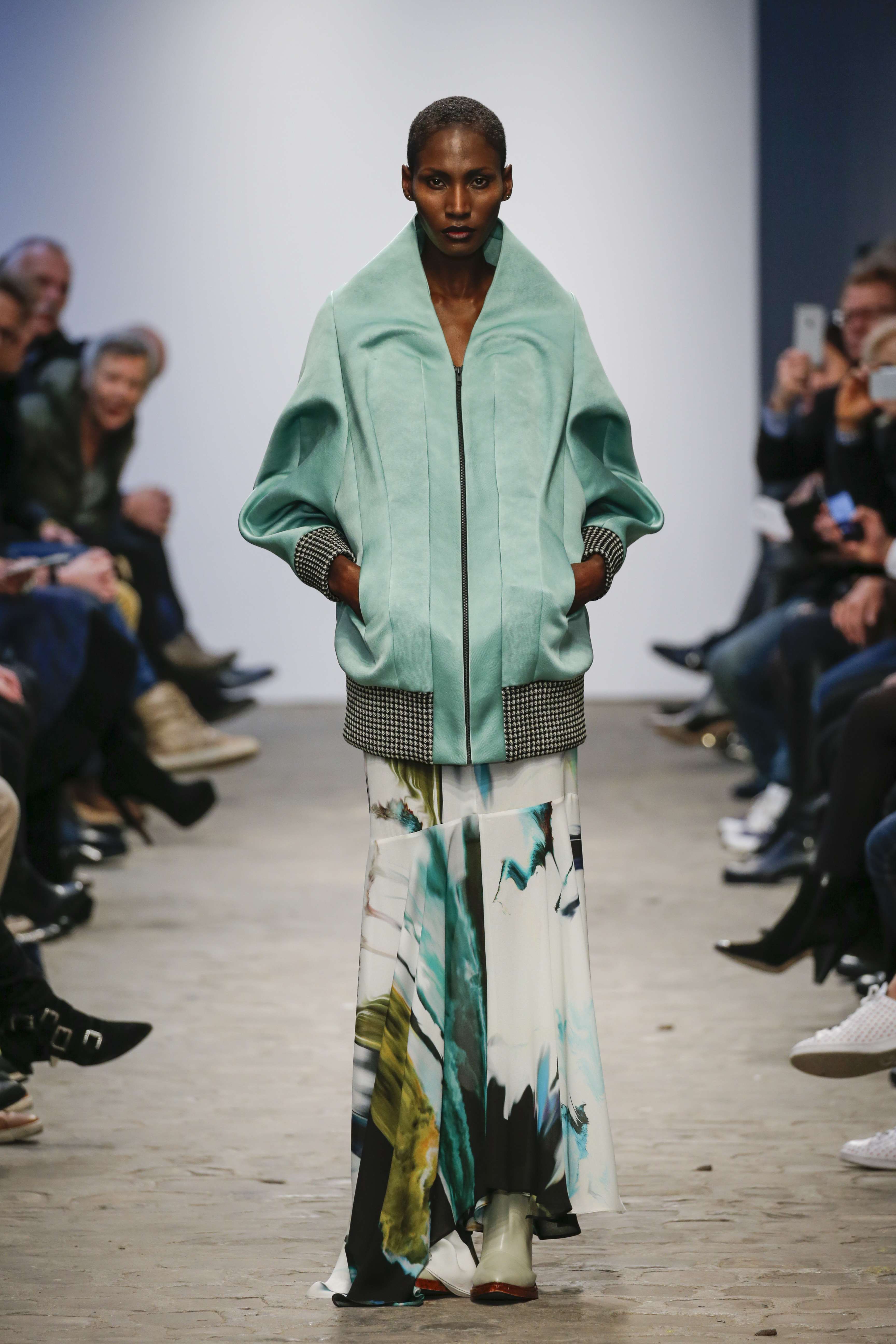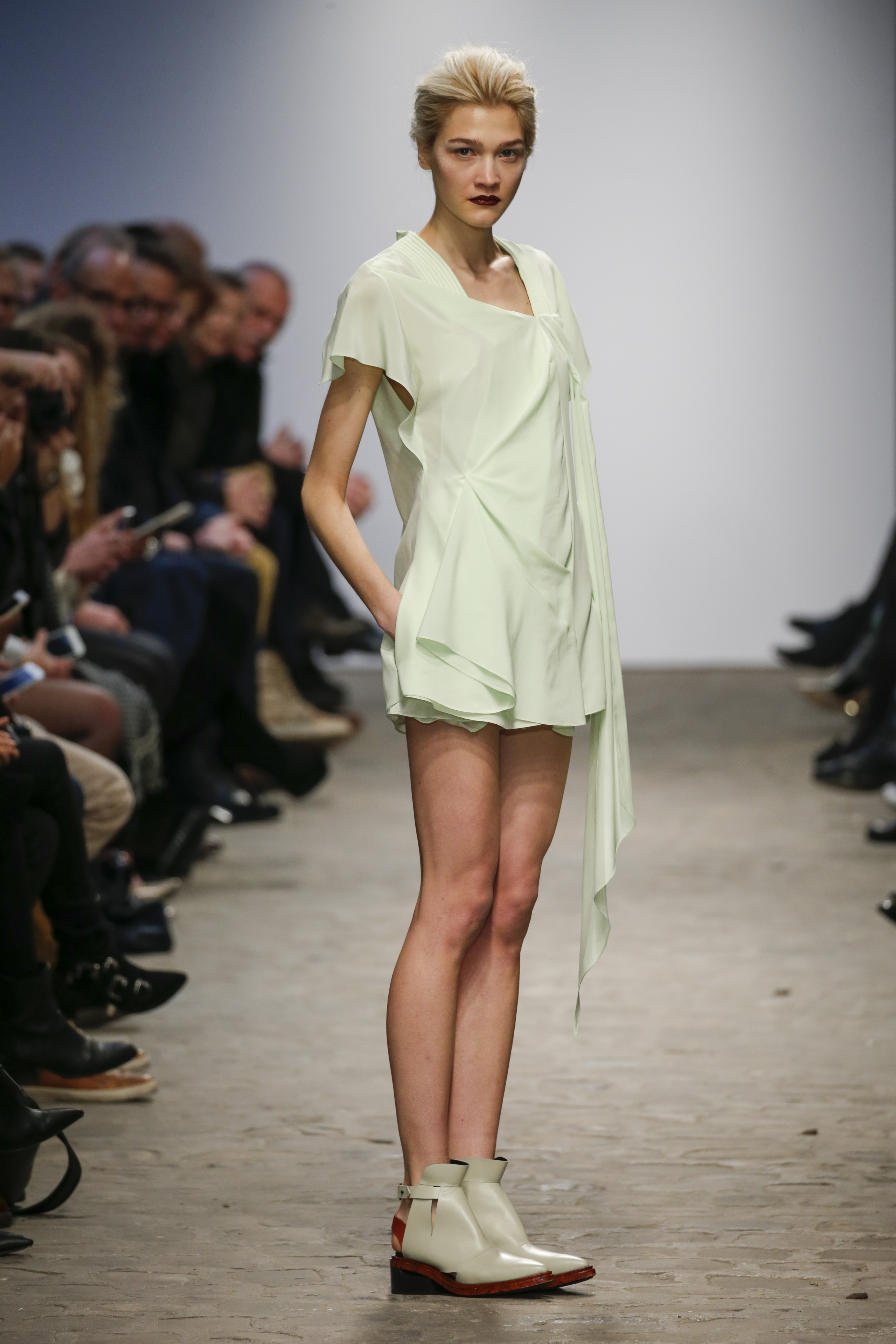 There was a mix of big volumes and fluid shear silks…….