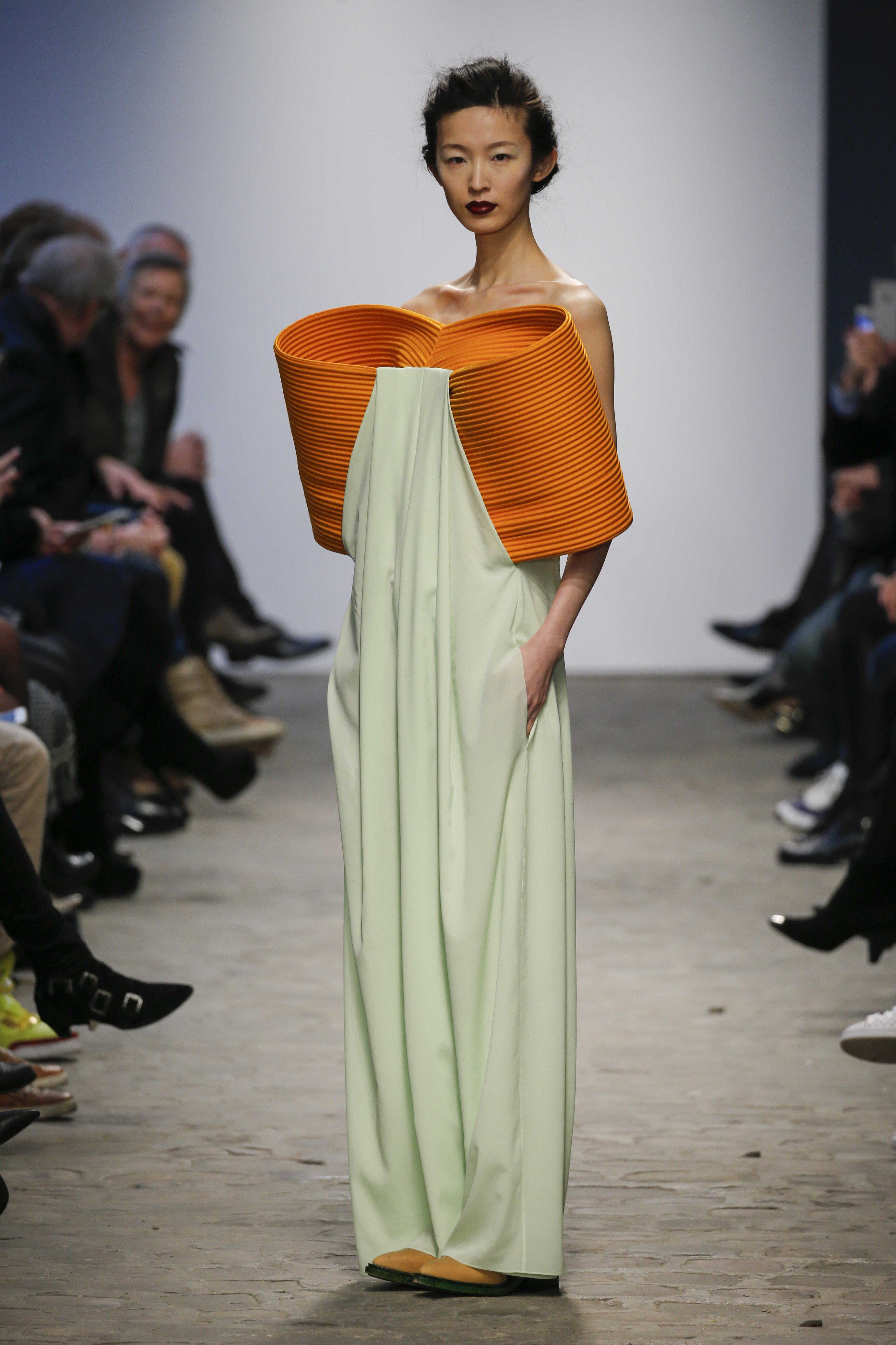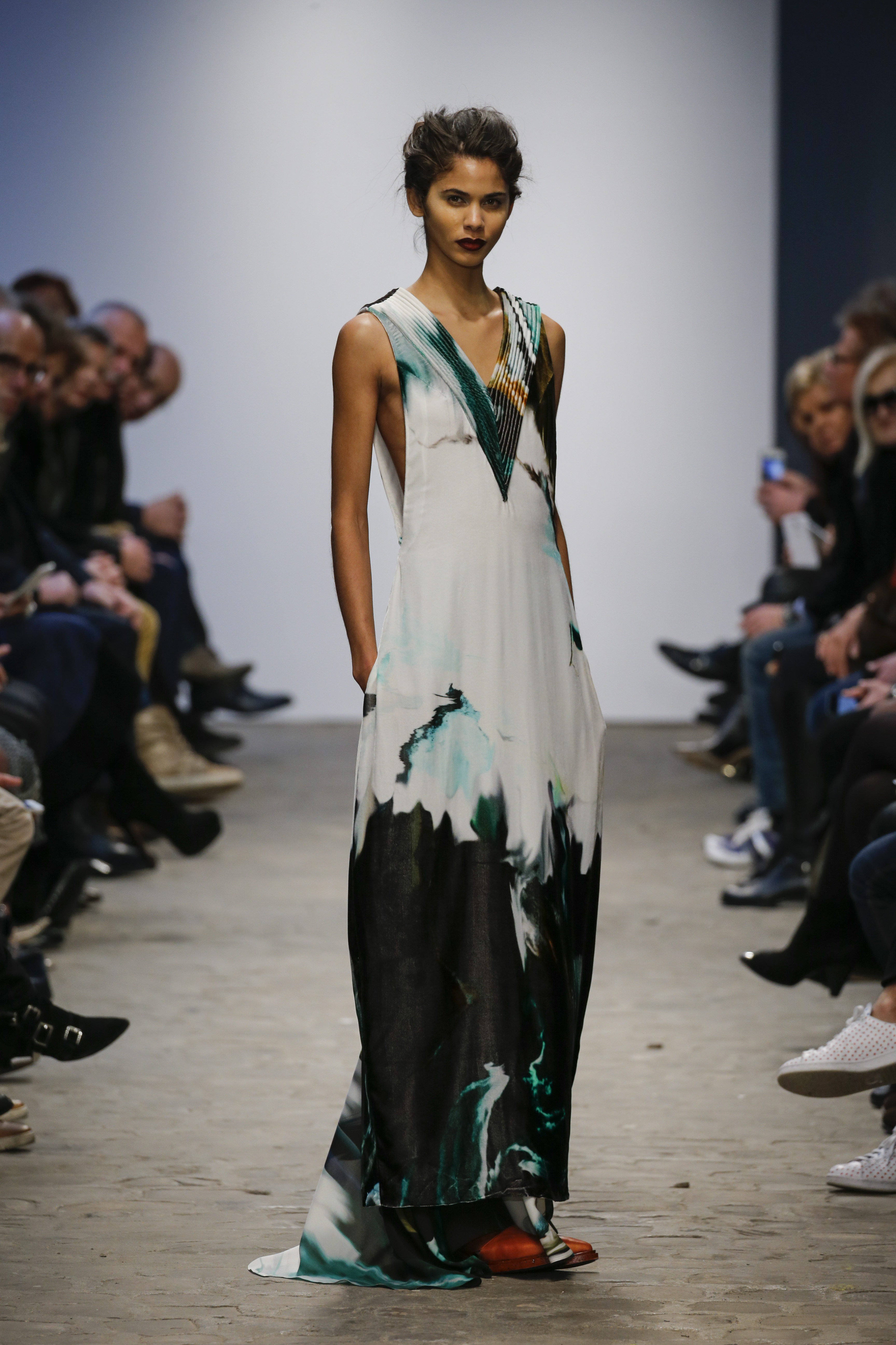 Loud nature beats vibrated through speakers as the collection was unveiled. The clothing was an energetic and divine balance of contradicting elements, in both flashing speed as in elegant slow motion.