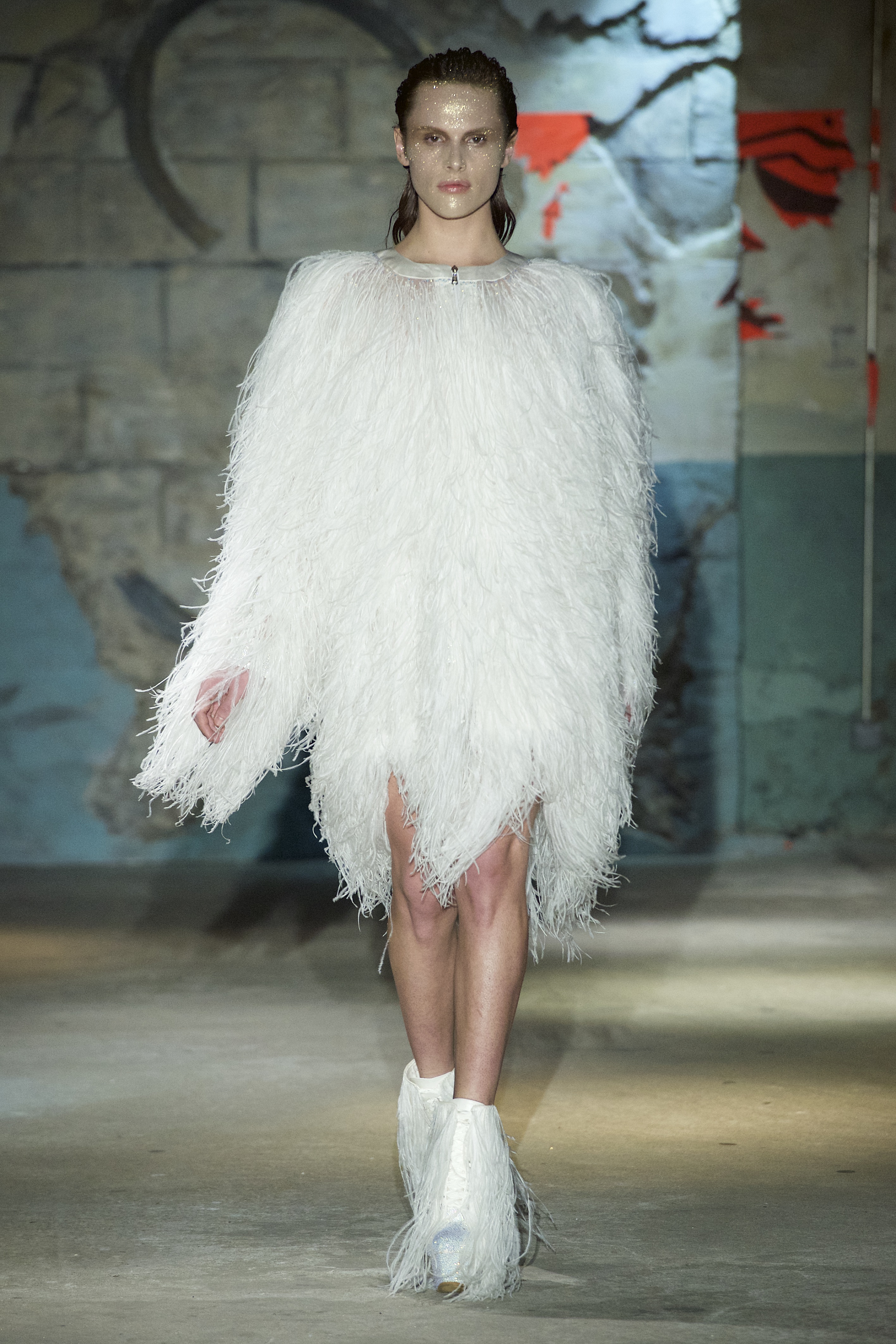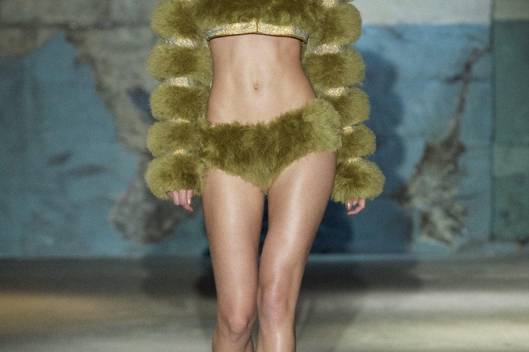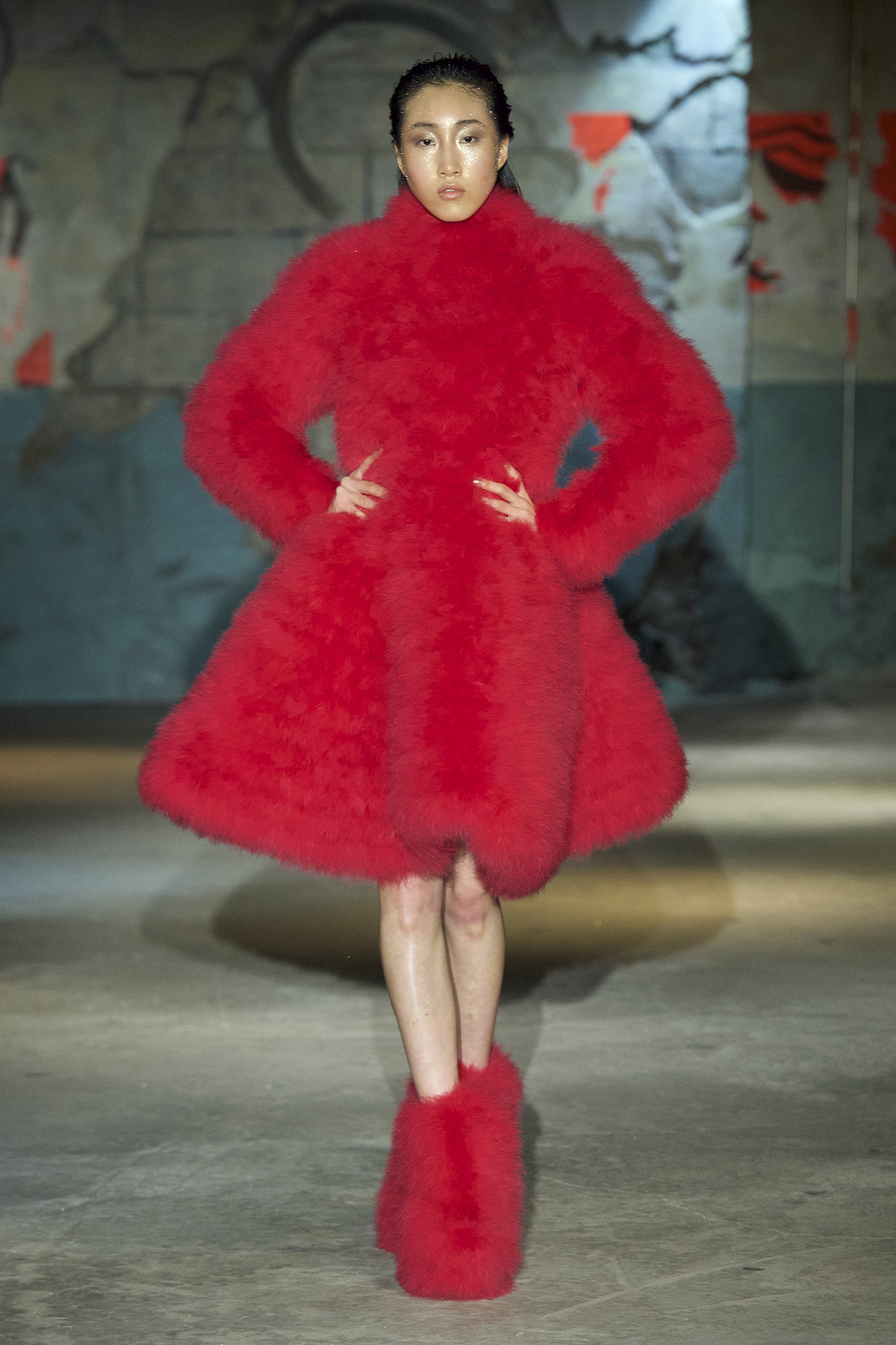 Aside from the fur shrugs and bombers, there was corseted gowns and ostrich feathers.