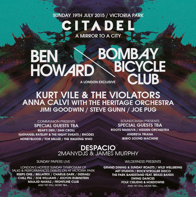 Topping the bill are two of the UK’s biggest acts, in the form of the chart/arena conquering folk hero Ben Howard, and critically acclaimed, award winning quartet Bombay Bicycle Club, who will play their only London performance of 2015 at Cita-del. Furthermore, there’s an impressive slew of other artists which make Citadel one of the most important and exciting musical happenings of the year.
