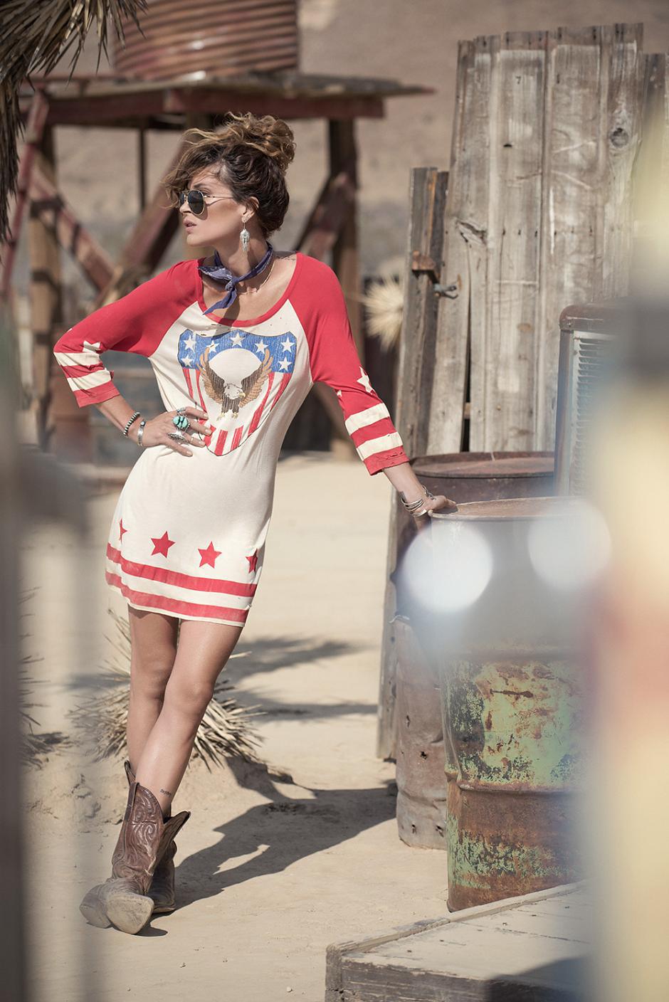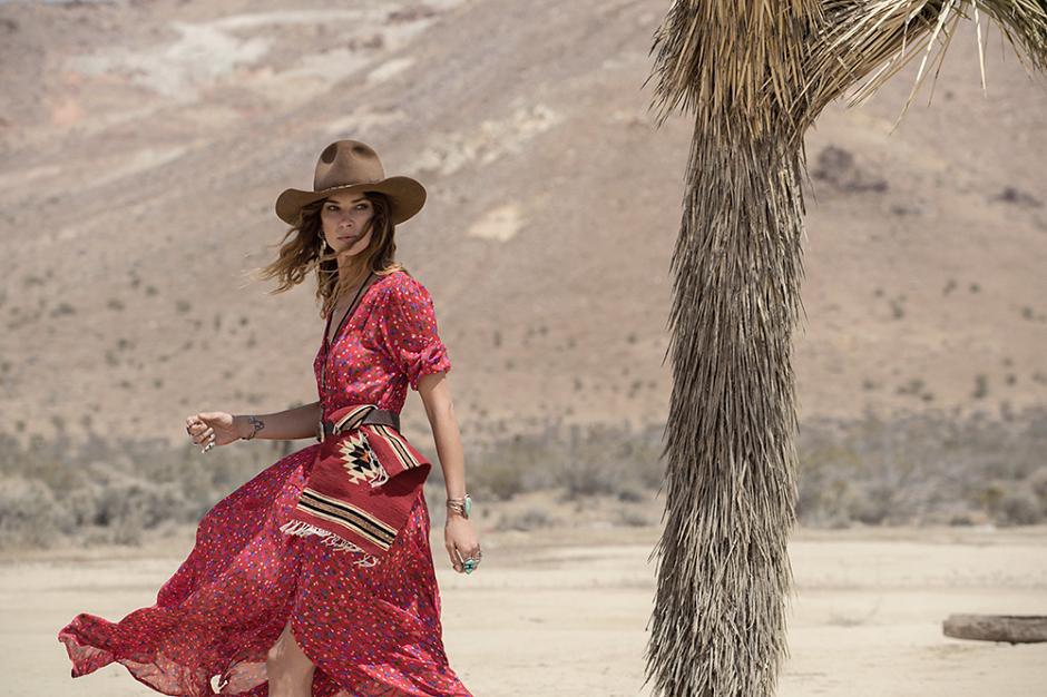 Cowboy boots, chambray shirts, leather fringed skirts, and maxi-dresses: it is a bohemian rebel that sets foot on “Sunset Road.” No wonder, rock-chick Erin Wasson was called on to front this desert catwalk – she’s the optimal Texan goddess. See the stunning imagery by Graham Dunn….