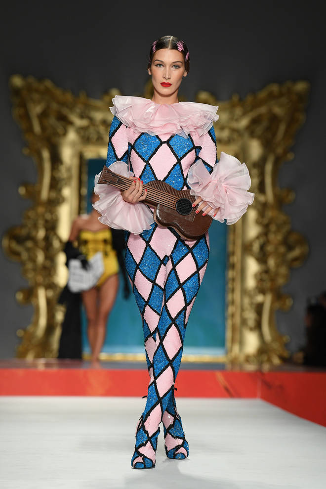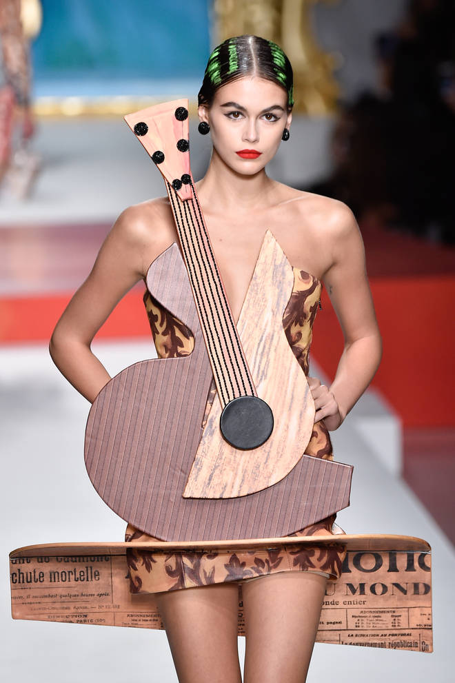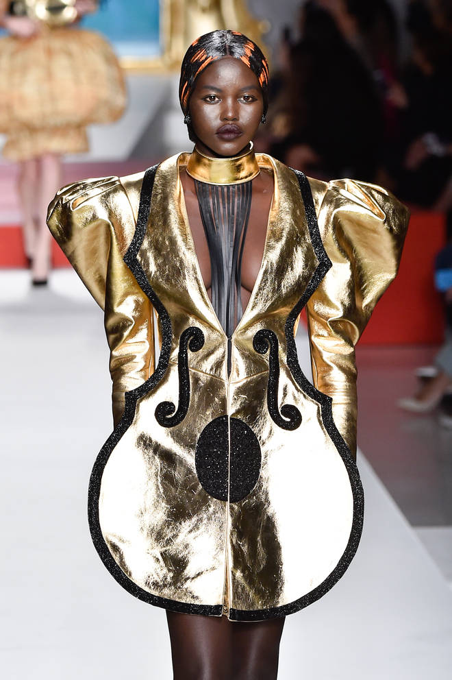 Moschino was one of the latest brands to embrace musical references and incorporate guitars, mandolins and violins on the runway, in Milan.