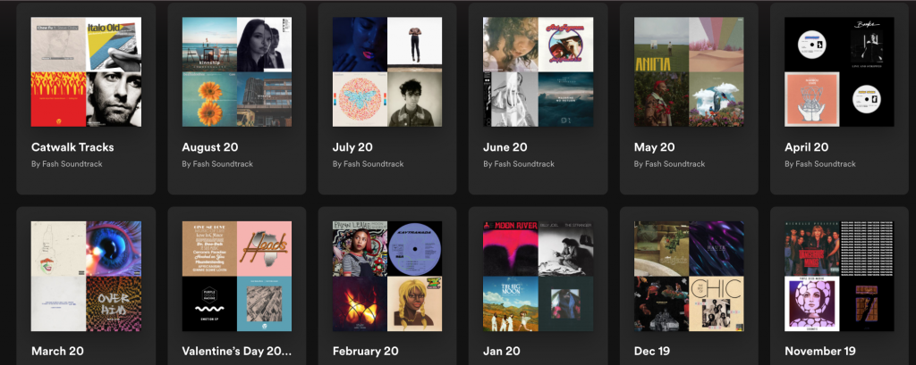 We can be found on Spotify… at Fash Soundtrack. So tune in. Playlists are updated everyday.